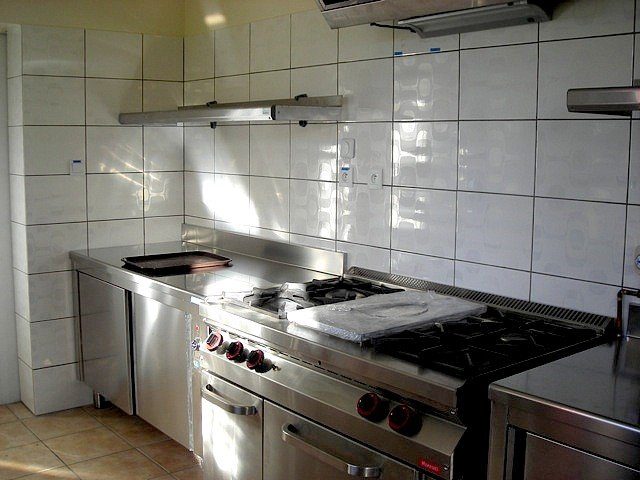 Vous bénéficiez d’une cuisine professionnelle que vous pouvez utiliser à votre guise. Elle est équipée de matériel semi-professionnel : fours, friteuses, grands plans de travail, lave-vaisselle, chambre froide. Elle a été conçue pour la collectivité.